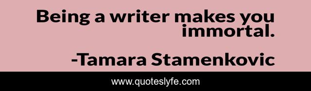 This page presents the quote "Being a writer makes you immortal.". Author of this quote is Tamara Stamenkovic. This quote is about being-real, writer, poetry, yourself, immortality, truth, believe,.