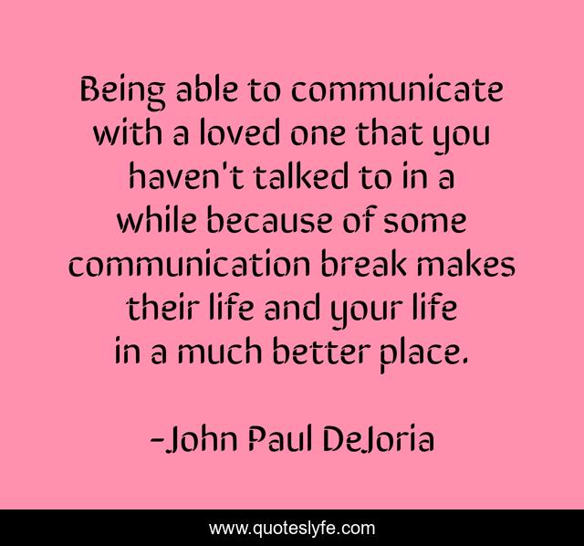 This page presents the quote "Being able to communicate with a loved one that you haven't talked to in a while because of some communication break makes their life and your life in a much better place.". Author of this quote is John Paul DeJoria. This quote is about better, life,.
