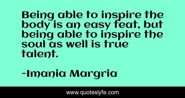 "Imania Margria Quotes." Quoteslyfe.com, 2025. Tue. 09 Dec. 2025. <https://www.quoteslyfe.com/quote/Being-able-to-inspire-the-body-is-37028>.