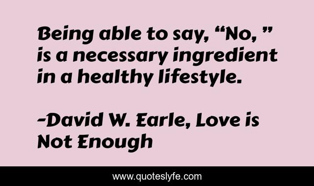 This page presents the quote "Being able to say, “No, ” is a necessary ingredient in a healthy lifestyle.". Author of this quote is David W. Earle, Love is Not Enough. This quote is about love, recovery, healthy, chaos, boundaries, lifestyle, dysfunctional, families, change,.