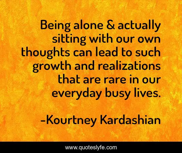 This page presents the quote "Being alone & actually sitting with our own thoughts can lead to such growth and realizations that are rare in our everyday busy lives.". Author of this quote is Kourtney Kardashian. This quote is about busy, growth, being alone,.
