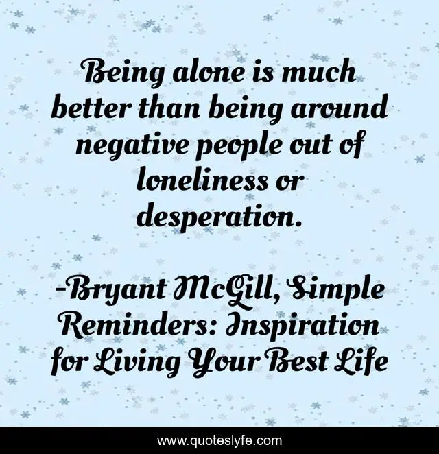 "Bryant McGill, Simple Reminders: Inspiration for Living Your Best Life Quotes." Quoteslyfe.com, 2025. Sat. 06 Dec. 2025. <https://www.quoteslyfe.com/quote/Being-alone-is-much-better-than-being-198703>.