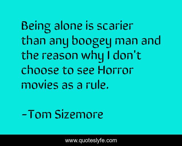 This page presents the quote "Being alone is scarier than any boogey man and the reason why I don't choose to see Horror movies as a rule.". Author of this quote is Tom Sizemore. This quote is about alone, man, being alone,.