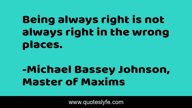 "Michael Bassey Johnson, Master of Maxims Quotes." Quoteslyfe.com, 2025. Fri. 05 Dec. 2025. <https://www.quoteslyfe.com/quote/Being-always-right-is-not-always-right-220750>.