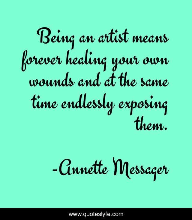 This page presents the quote "Being an artist means forever healing your own wounds and at the same time endlessly exposing them.". Author of this quote is Annette Messager. This quote is about sensibility, artists,.