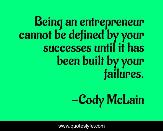 This page presents the quote "Being an entrepreneur cannot be defined by your successes until it has been built by your failures.". Author of this quote is Cody McLain. This quote is about failure, success, entrepreneurship,.