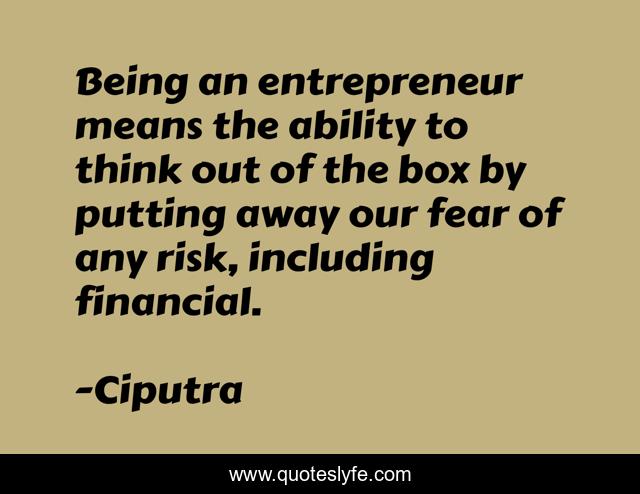This page presents the quote "Being an entrepreneur means the ability to think out of the box by putting away our fear of any risk, including financial.". Author of this quote is Ciputra. This quote is about financial, risk, think,.