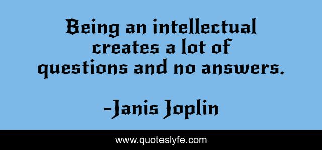 This page presents the quote "Being an intellectual creates a lot of questions and no answers.". Author of this quote is Janis Joplin. This quote is about questions, intellectual,.