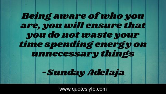 This page presents the quote "Being aware of who you are, you will ensure that you do not waste your time spending energy on unnecessary things". Author of this quote is Sunday Adelaja. This quote is about life, knowledge, self-knowledge, energy, purpose, waste,.