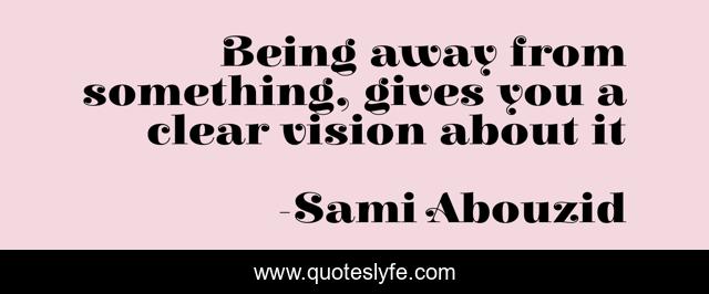 This page presents the quote "Being away from something, gives you a clear vision about it". Author of this quote is Sami Abouzid. This quote is about love, affection,.