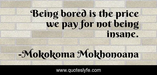 "Mokokoma Mokhonoana Quotes." Quoteslyfe.com, 2025. Mon. 08 Dec. 2025. <https://www.quoteslyfe.com/quote/Being-bored-is-the-price-we-pay-22533>.