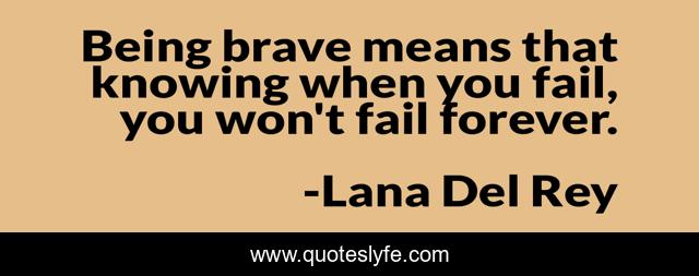 This page presents the quote "Being brave means that knowing when you fail, you won't fail forever.". Author of this quote is Lana Del Rey. This quote is about forever, queen, life, lana-del-rey, music, fail, bravery,.