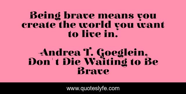 "Andrea T. Goeglein, Don't Die Waiting to Be Brave Quotes." Quoteslyfe.com, 2025. Fri. 05 Dec. 2025. <https://www.quoteslyfe.com/quote/Being-brave-means-you-create-the-world-89645>.