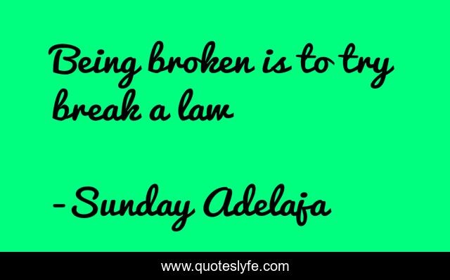 This page presents the quote "Being broken is to try break a law". Author of this quote is Sunday Adelaja. This quote is about broken, law, knowledge, truth, reality,.