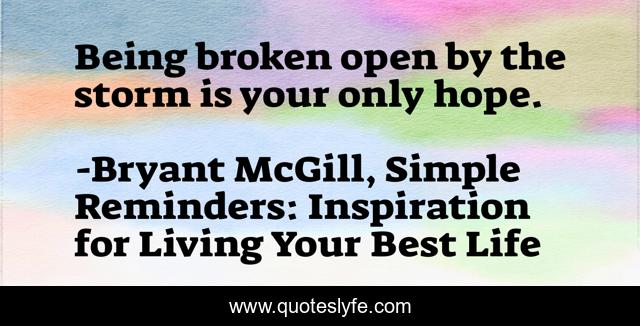 "Bryant McGill, Simple Reminders: Inspiration for Living Your Best Life Quotes." Quoteslyfe.com, 2025. Sat. 06 Dec. 2025. <https://www.quoteslyfe.com/quote/Being-broken-open-by-the-storm-is-139990>.