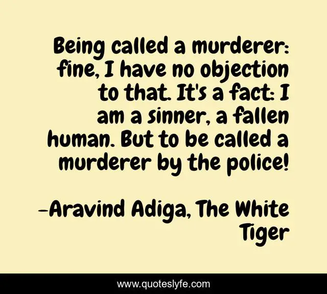 "Aravind Adiga, The White Tiger Quotes." Quoteslyfe.com, 2025. Mon. 15 Dec. 2025. <https://www.quoteslyfe.com/quote/Being-called-a-murderer-fine-I-have-200157>.
