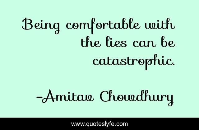 This page presents the quote "Being comfortable with the lies can be catastrophic.". Author of this quote is Amitav Chowdhury. This quote is about society-denial, lies, consciousness, greed, destruction,.