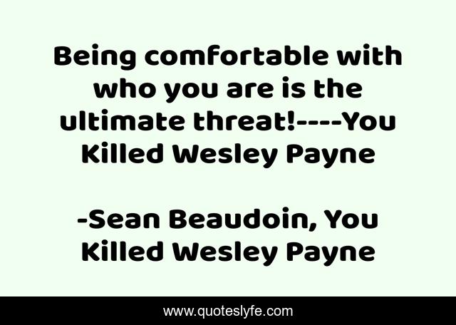This page presents the quote "Being comfortable with who you are is the ultimate threat!----You Killed Wesley Payne". Author of this quote is Sean Beaudoin, You Killed Wesley Payne. .