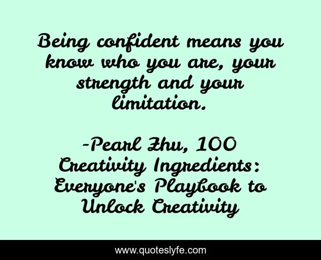 This page presents the quote "Being confident means you know who you are, your strength and your limitation.". Author of this quote is Pearl Zhu, 100 Creativity Ingredients: Everyone's Playbook to Unlock Creativity. This quote is about confidence, creativity,.