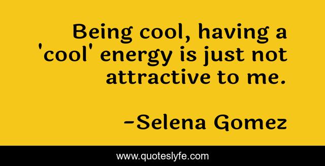 This page presents the quote "Being cool, having a 'cool' energy is just not attractive to me.". Author of this quote is Selena Gomez. This quote is about me, being, energy,.