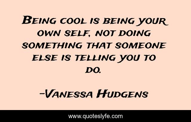 This page presents the quote "Being cool is being your own self, not doing something that someone else is telling you to do.". Author of this quote is Vanessa Hudgens. .