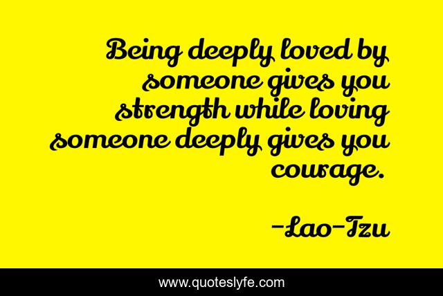This page presents the quote "Being deeply loved by someone gives you strength while loving someone deeply gives you courage.". Author of this quote is Lao-Tzu. This quote is about true, love, affection,.