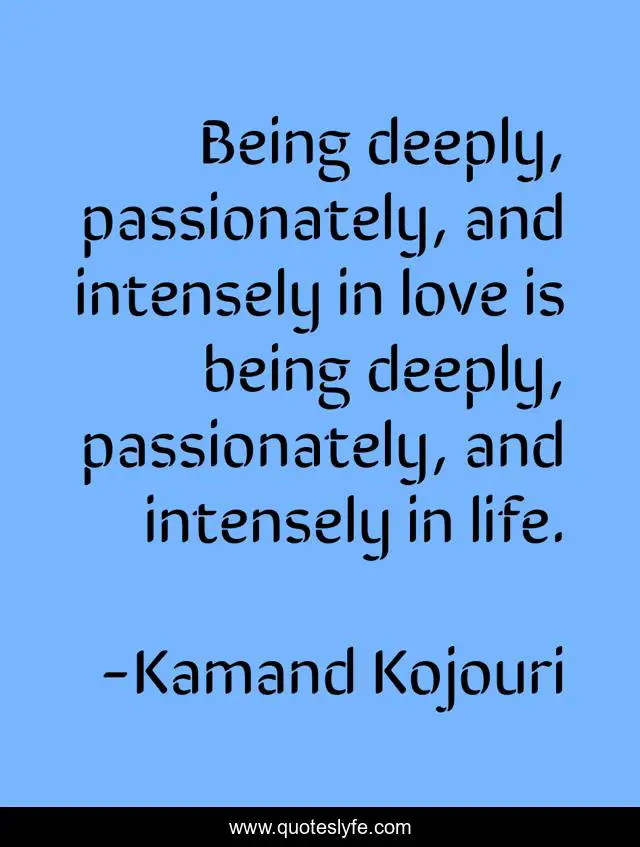 "Kamand Kojouri Quotes." Quoteslyfe.com, 2025. Mon. 08 Dec. 2025. <https://www.quoteslyfe.com/quote/Being-deeply-passionately-and-intensely-in-love-49542>.