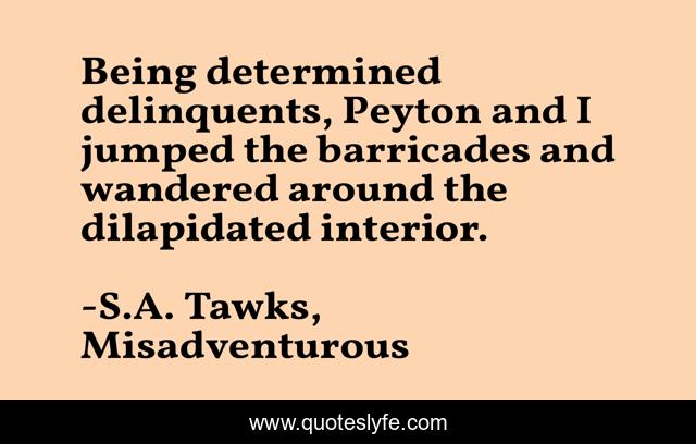 "S.A. Tawks, Misadventurous Quotes." Quoteslyfe.com, 2025. Mon. 08 Dec. 2025. <https://www.quoteslyfe.com/quote/Being-determined-delinquents-Peyton-and-I-jumped-151643>.