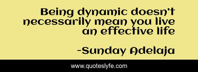 This page presents the quote "Being dynamic doesn’t necessarily mean you live an effective life". Author of this quote is Sunday Adelaja. This quote is about love, people, money, principles, employment, worship, impact, living, jobless,.