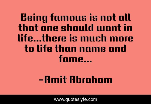 This page presents the quote "Being famous is not all that one should want in life...there is much more to life than name and fame...". Author of this quote is Amit Abraham. This quote is about famous, life-and-living, fame, name,.