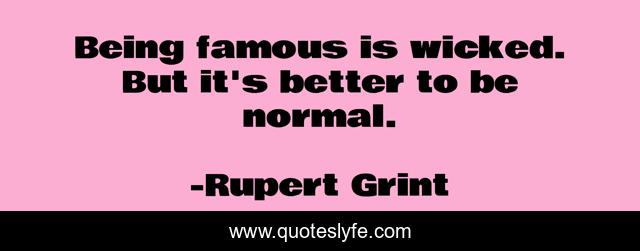 This page presents the quote "Being famous is wicked. But it's better to be normal.". Author of this quote is Rupert Grint. This quote is about better, being famous, being,.