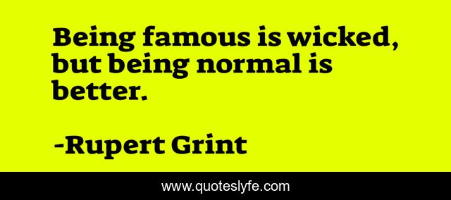 This page presents the quote "Being famous is wicked, but being normal is better.". Author of this quote is Rupert Grint. This quote is about fame, normality,.