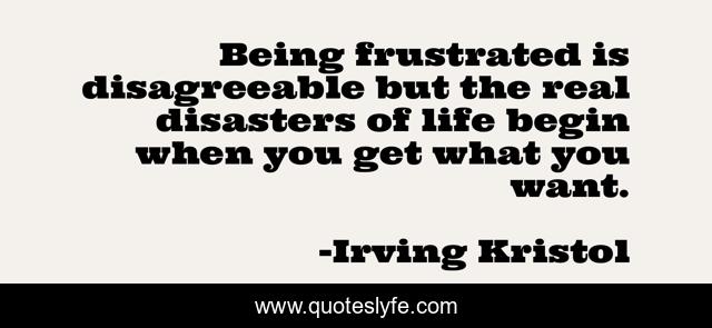 This page presents the quote "Being frustrated is disagreeable but the real disasters of life begin when you get what you want.". Author of this quote is Irving Kristol. .