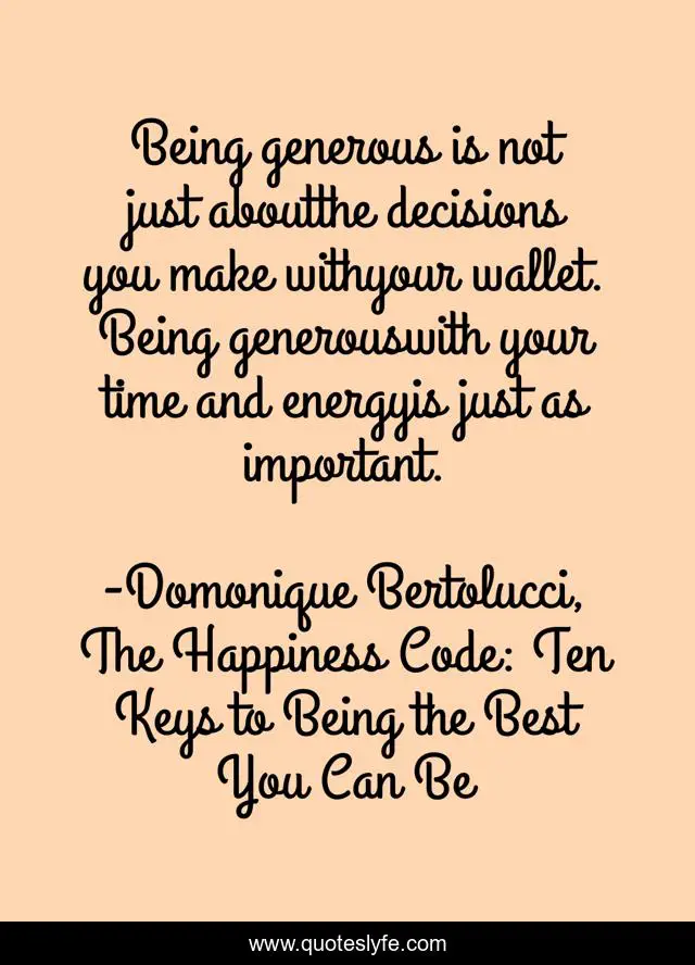 "Domonique Bertolucci, The Happiness Code: Ten Keys to Being the Best You Can Be Quotes." Quoteslyfe.com, 2025. Sat. 06 Dec. 2025. <https://www.quoteslyfe.com/quote/Being-generous-is-not-just-aboutthe-decisions-215334>.