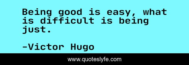 This page presents the quote "Being good is easy, what is difficult is being just.". Author of this quote is Victor Hugo. This quote is about justice, goodness, fairness,.