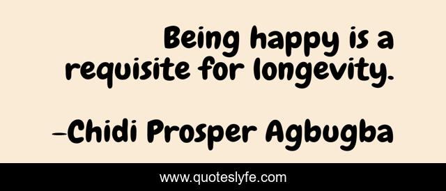 This page presents the quote "Being happy is a requisite for longevity.". Author of this quote is Chidi Prosper Agbugba. This quote is about confidence, old-age, success, positive, motivational, longevity, optimistic, inspirational, enthusiasm,.