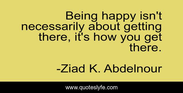 This page presents the quote "Being happy isn't necessarily about getting there, it's how you get there.". Author of this quote is Ziad K. Abdelnour. .