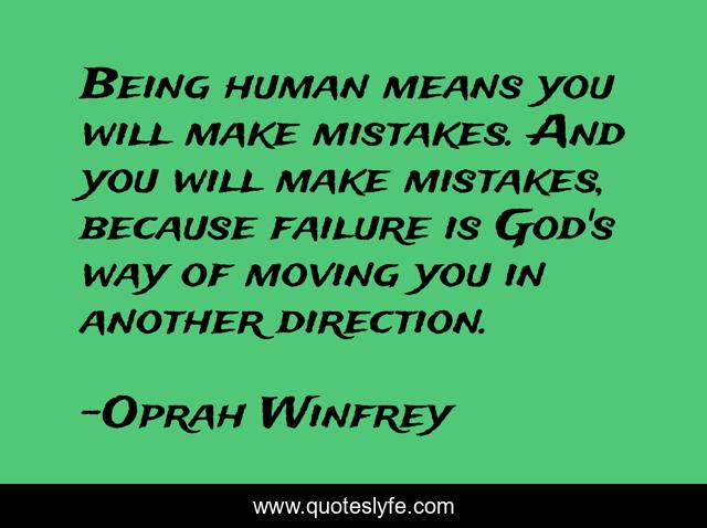 This page presents the quote "Being human means you will make mistakes. And you will make mistakes, because failure is God's way of moving you in another direction.". Author of this quote is Oprah Winfrey. This quote is about god, mistakes, moving,.