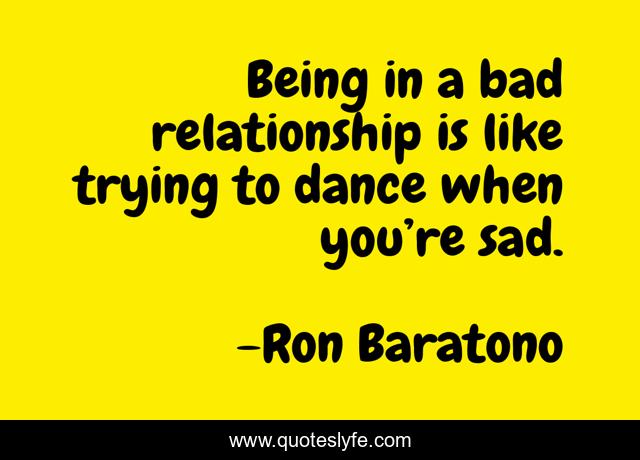 This page presents the quote "Being in a bad relationship is like trying to dance when you’re sad.". Author of this quote is Ron Baratono. This quote is about relationships, life, sadness,.