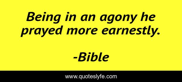 This page presents the quote "Being in an agony he prayed more earnestly.". Author of this quote is Bible. .