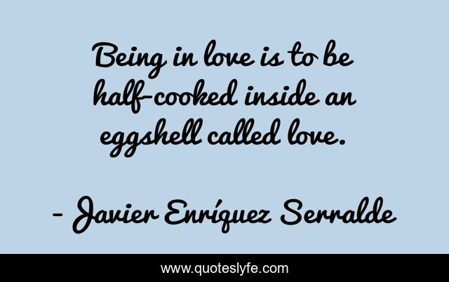 This page presents the quote "Being in love is to be half-cooked inside an eggshell called love.". Author of this quote is Javier Enríquez Serralde. This quote is about life, falling-in-love, love, truth, affection,.