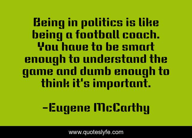 This page presents the quote "Being in politics is like being a football coach. You have to be smart enough to understand the game and dumb enough to think it's important.". Author of this quote is Eugene McCarthy. .