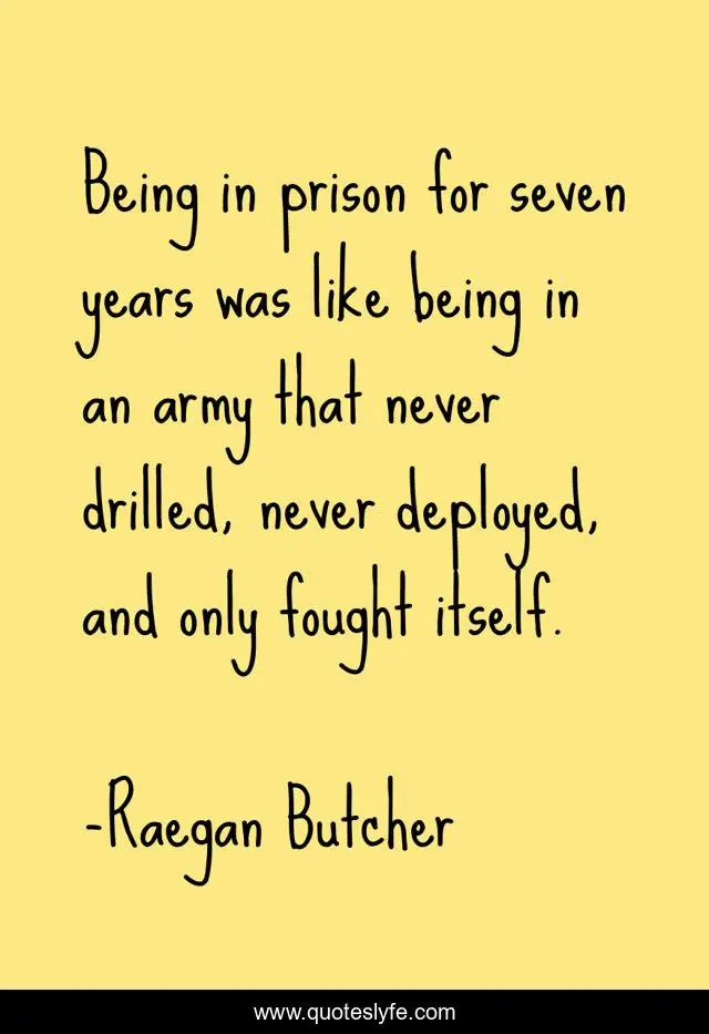 "Raegan Butcher Quotes." Quoteslyfe.com, 2025. Sat. 06 Dec. 2025. <https://www.quoteslyfe.com/quote/Being-in-prison-for-seven-years-was-233400>.
