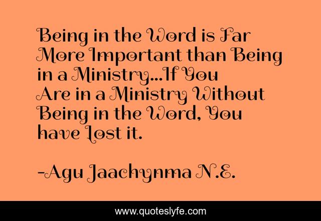 This page presents the quote "Being in the Word is Far More Important than Being in a Ministry...If You Are in a Ministry Without Being in the Word, You have Lost it.". Author of this quote is Agu Jaachynma N.E.. This quote is about faith, christianity-faith, spirituality, inspirational, enthusiasm,.