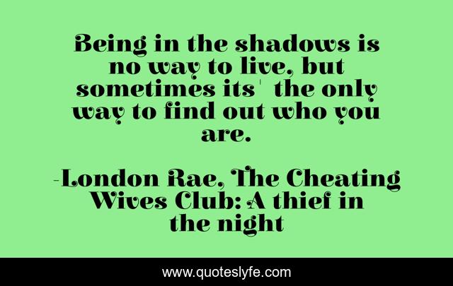 "London Rae, The Cheating Wives Club: A thief in the night Quotes." Quoteslyfe.com, 2025. Fri. 05 Dec. 2025. <https://www.quoteslyfe.com/quote/Being-in-the-shadows-is-no-way-83565>.