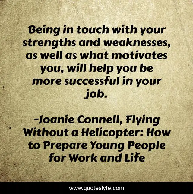 "Joanie Connell, Flying Without a Helicopter: How to Prepare Young People for Work and Life Quotes." Quoteslyfe.com, 2025. Mon. 08 Dec. 2025. <https://www.quoteslyfe.com/quote/Being-in-touch-with-your-strengths-and-197855>.