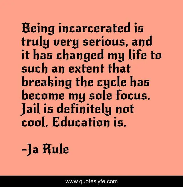 This page presents the quote "Being incarcerated is truly very serious, and it has changed my life to such an extent that breaking the cycle has become my sole focus. Jail is definitely not cool. Education is.". Author of this quote is Ja Rule. This quote is about life, education, focus,.