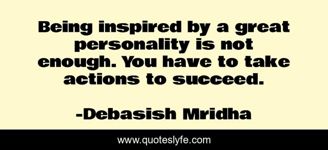 This page presents the quote "Being inspired by a great personality is not enough. You have to take actions to succeed.". Author of this quote is Debasish Mridha. This quote is about success, how-to-succeed, philosophy, debasish-mridha, debasish-mridha-m-d, quotes, inspirational, enthusiasm, great-personality,.