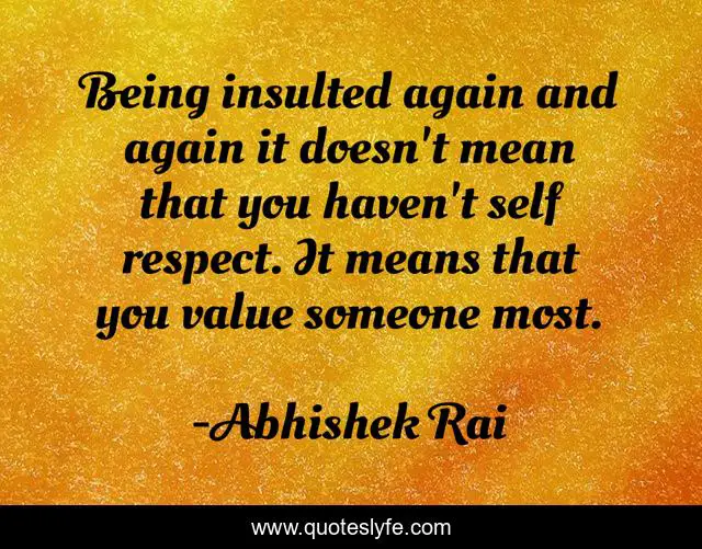 This page presents the quote "Being insulted again and again it doesn't mean that you haven't self respect. It means that you value someone most.". Author of this quote is Abhishek Rai. .
