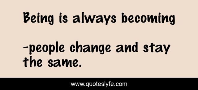 "people change and stay the same. Quotes." Quoteslyfe.com, 2025. Fri. 05 Dec. 2025. <https://www.quoteslyfe.com/quote/Being-is-always-becoming-280821>.